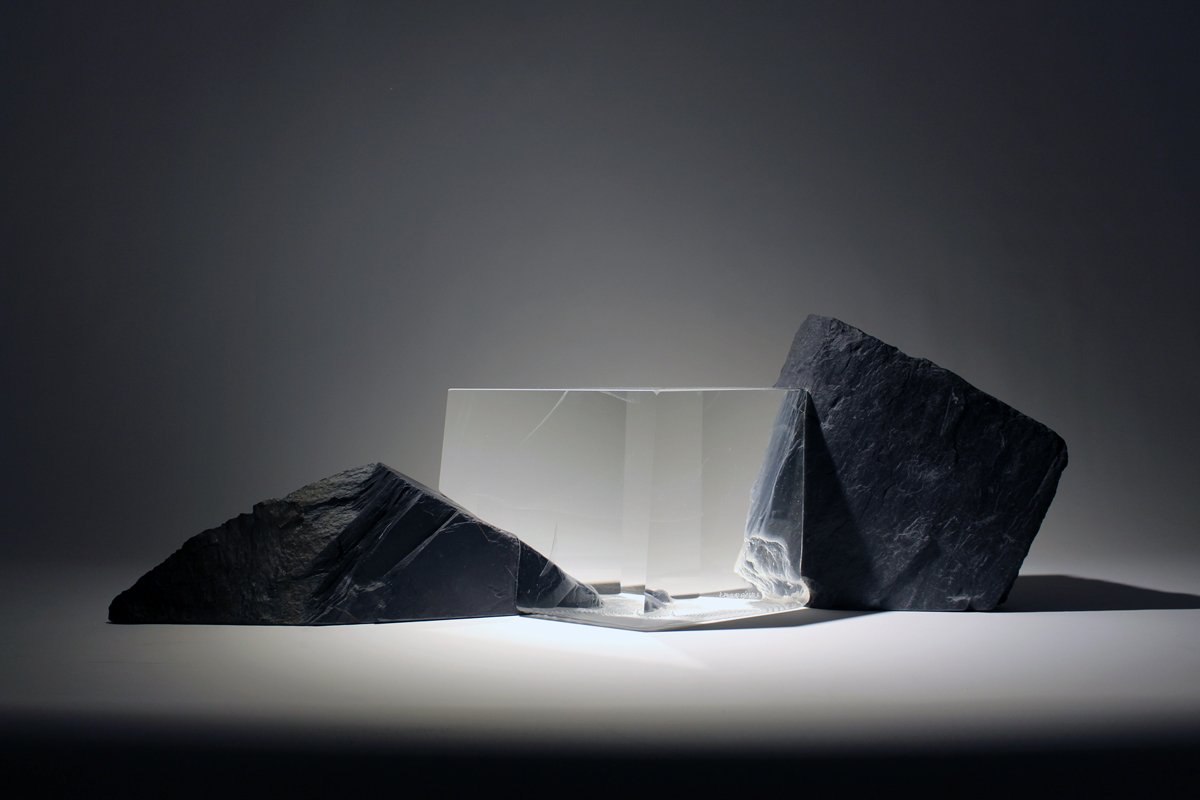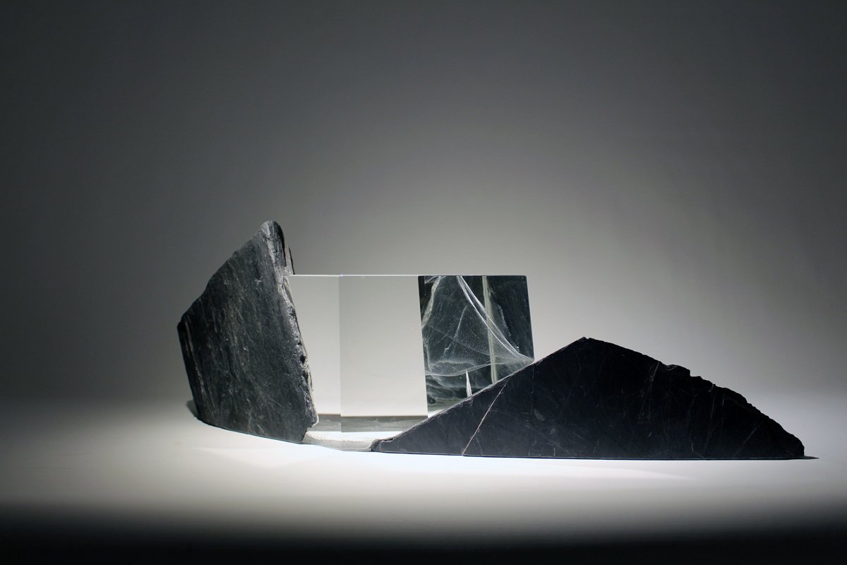 + L’ONDE ET LA TERRE III Verre et ardoise H 22 X 67 X 16 cm 2018Précédente sculptureSculpture suivante